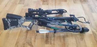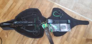 Arbalète Horton à branches inversées, modèle RDX, étui, flèches, corde de rechange et 2 systèmes pour armer.
