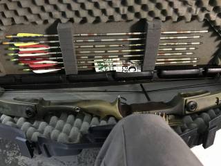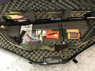 Arc tout équipé avec étui, flèches, déclencheur, etc.