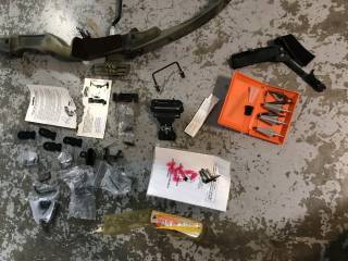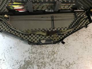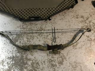 Arc Bear tout équipé, flèches , pointes de chasse et de pratique, déclencheur, mires additionnelles, étui, etc. Pratiquement neuve, peu servie, corde neuve, j'étire de la main gauche et les mires sont à gauche.